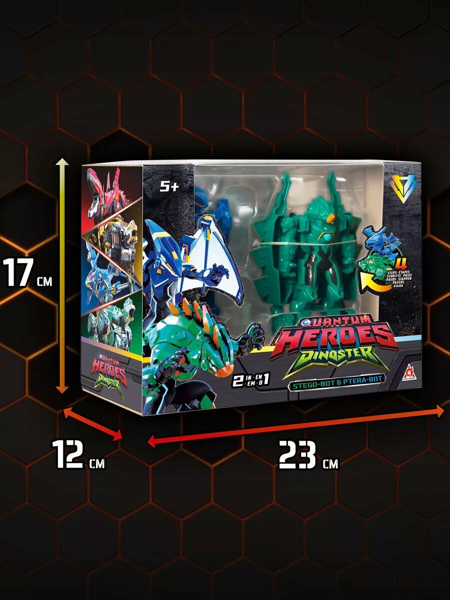 Добро пожаловать в команду Диностер! Представим себе другое измерение, где бы люди и динозавры жили вместе в мире и спокойствии. Это возможно благодаря четырем отважным друзьям – команде Диностер, которые с помощью своих роботов-трансформеров и профессора Лоры защищают Землю и Дино-мир. Оз: весельчак-палеонтолог. Легко поднимает настроение команды. И отвечает за то, чтобы команда была сильной, стильной и дружной. Джей Мин: технический гений команды. Может разобраться в любых механизмах. Он любит помогать, а не геройствовать. Набор 2 дино-бота трансформера Оз и Джей Мин 13 см легко трансформируются из фигурок героев в Дино-костюмах в Дино-ботов всего за 4 простых этапа. Играй фигурками героев и воплощай все миссии из мультика или пересобери их в Дино-ботов. Режим Дино-ход! Птеро-трак, трансформация! Собери всю команду Диностер! Упаковка – коробка с окном 23х17х12 см. Трансформер выполнен из высококачественного пластика. Товар сертифицирован. Компания "РОСМЭН"- эксклюзивный дистрибьютор бренда на территории РФ.