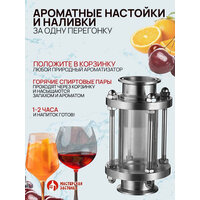 Диоптр джин-корзина вам понадобится для мгновенной ароматизации напитка. Положите в корзинку любой натуральный природный ароматизатор - горячие спиртовые пары проходят через корзинку внутри диоптра и насыщаются запахом природных ароматных веществ. Таким образом, ароматные настойки и наливки, которые готовятся 1-2 месяца вы получите за одну перегонку и всего за 1-2 часа!