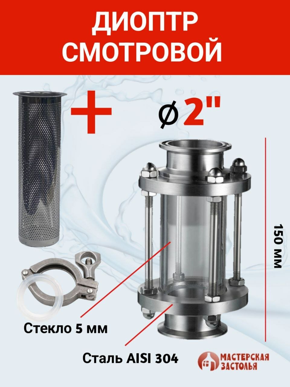 Диоптр имеет диаметр креплений 2 дюйма и полностью совместим с самогонным аппаратом, с соединением 2 дюйма.