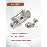 В комплект поставки входят диоптр, хомут и прокладка. Хомут обеспечивает надежное крепление диоптра к оборудованию, а прокладка предотвращает протекание.
