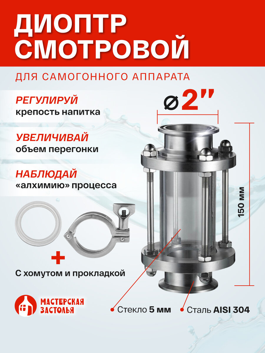 Диоптр под кламп 2 дюйма, 150мм с хомутом и прокладкой Мастерская Застолья: сравнение цен, характеристики, фото, актуальное наличие и цены.