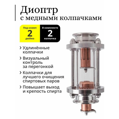 Диоптр используется для визуального контроля за процессом перегонки. Что позволяет предотвратить захлебывание колонны, пено- и брызгоунос.