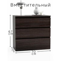 Комод Марм отлично подойдет для игрушек и детских вещей, для белья и одежды, для косметики, для книг и инструментов. Комод 3 ящика в черном цвете создаст порядок в любой комнате, будь то прихожая, спальня, гостиная, ванная или детская комната. Данная модель комода может быть использована как тумба под телевизор, особенно если совместить два комода вместе. Цвет близок к темному матовому, поэтому комод прекрасно впишется в лофтовые помещения. Ящики комода Марм можно использовать для хранения вещей одного типа или тематически разделить их по назначению. Например, верхние ящики использовать под носки, перчатки и шарфы, средние - под футболки и майки, нижние - под пижамы и домашнюю одежду. В комплекте с комодом для одежды дополнительно поставляется органайзер для хранения. Комплект представляет собой 3 разделителя, которые можно установить внутри выдвижного ящика при сборке в нужном количестве. Также улучшили направляющие - теперь комод комплектуется деревянными направляющими, которые будут плавно выдвигаться и тихо закрываться, более надежны и долговечны. Комод 3 ящика изготовлен белорусским производителем "Диприз" из высококачественного ЛДСП. Для задней стенки комода и дна ящиков использовалось ДВП. Деревянный комод с ящиками выполнен на высокоточном оборудовании, все кромки изделия обработаны аккуратно, промышленным методом на современных станках, что обеспечивает плотное прилегание и прочность древесного слоя при контакте с влагой, устойчивость к влажности и деформации. Если повесить над комодом зеркало, выйдет отличное решение для обустройства прихожей. Расположив мебель в прихожей, вы сможете организовать хранение обуви, аксессуаров и других необходимых предметов, сохраняя порядок и чистоту в вашем входном пространстве. Деревянный комод можно использовать с письменным столом для создания удобного офиса. Если вы обустраиваете детскую комнату, наш детский комод станет прекрасным дополнением к интерьеру, чтобы получился замечательный комод для игрушек. Поставьте его в спальню, и получится хороший комод для вещей с ящиками или прикроватная тумба. Сборка комода с органайзером домашних условиях не вызовет трудностей за счет понятной инструкции по сборке и комплекта необходимой фурнитуры. Наша компания обеспечивает надежную упаковку товара с дополнительной защитой для предотвращения повреждений при транспортировке. Комод Марм – это современное сочетание стиля и функциональности. Минималистичный дизайн и просторные ящики делают его идеальным выбором для хранения вещей и создания стильного интерьера. Комод для одежды отлично впишется в комнаты современного и скандинавского стиля, бохо, лофт, минимализм. Выбирая стильный и экологичный комод Марм, вы делаете ответственный выбор в пользу природы и создаете функциональное и эстетичное пространство для хранения вещей в вашем доме. Подчеркните уникальность и создайте свое уютное домашнее пространство с нашей мебелью. Мы заботимся о Вашем удобстве!