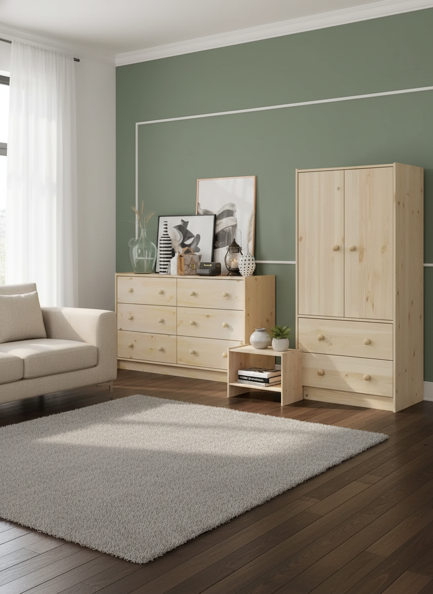 Комод Раст от белорусского производителя Dipriz изготовлен из экологически чистого материала – натурального дерева массива сосны, которое отличается высокой прочностью и долговечностью. Наш комод для одежды это удобный и функциональный предмет мебели. Он выполнен из натурального массива сосны и имеет 6 вместительных ящиков с роликовыми направляющими и органайзерами, что позволяет легко и с комфортом организовать пространство в любой комнате.