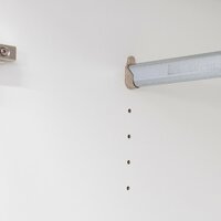 Особенностью шкафа является наличие металлической штанги для одежды с регулировкой по высоте в 5 положениях. Благодаря этому Вы сами сможете изменять внутреннее наполнение шкафа, оставляя больше места для одежды на штанге или на полке под ней.