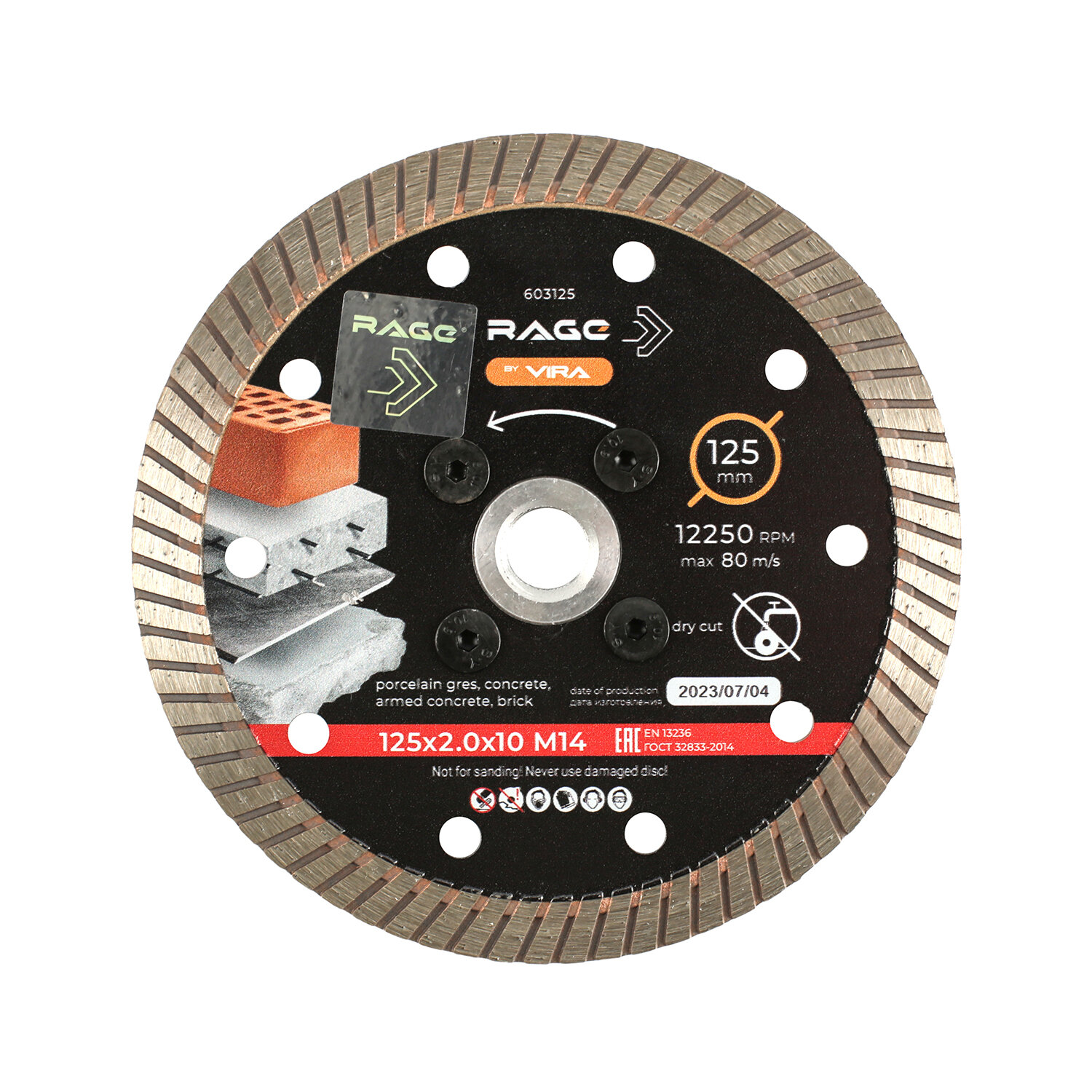 Алмазный Турбо диск с фланцем RAGE изготовлен методом горячего прессования.
