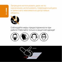 - Следует избегать приложения излишнего усилия на диск при резке, так как это приводит к перегреву режущих сегментов и как следствие уменьшению эксплуатационного ресурса диска.