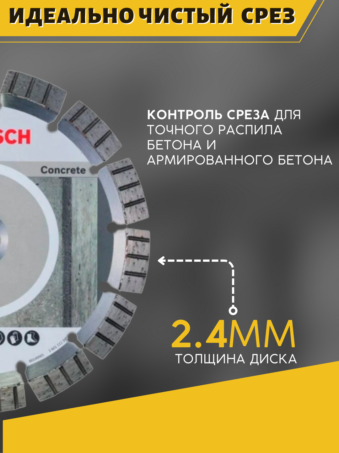 Алмазный отрезной диск Best for Concrete обеспечивает быструю резку бетона. Алмазные режущие сегменты (высота 15 мм), закрепленные лазерной сваркой, отличаются прочностью для быстрой резки