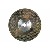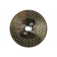 Назначение: керамогранит, керамика, мрамор. Особенности: диск со сплошной режущей кромкой для резки и шлифовки. Фланец М-14 позволяет устанавливать данный диск на УШМ без зажимной гайки, это значительно усиливает корпус диска, и дает возможность обрабатывать материал под любым углом, создавая дополнительные возможности в работе. Рекомендуется применять с водяным охлаждением.