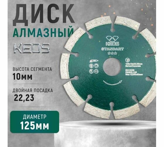 Диск алмазный KEOS Standart сегментный (бетон) эко.125мм/22,23: сравнение цен, характеристики, фото, актуальное наличие и цены.