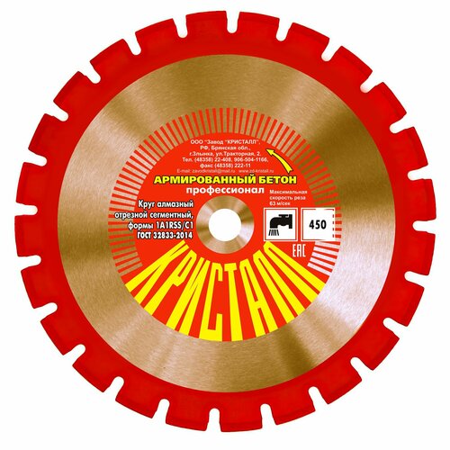 Настоящий профессиональный алмазный инструмент Диск алмазный Кристалл 11451 предназначен для резки на бензорезах, нарезчиках швов армированного бетона, огнеупоров.
