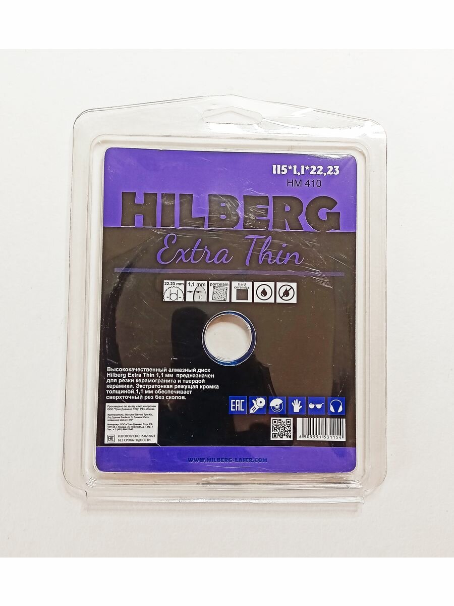 Hilberg сплошной серия Extra Thin 1,1 mm Назначение: керамогранит, керамика. Особенности: высококачественный миллиметровый алмазный отрезной диск с фланцем и с компенсационными отверстиями для деликатных работ по керамограниту и твердой керамике. Технология производства: горячее прессование