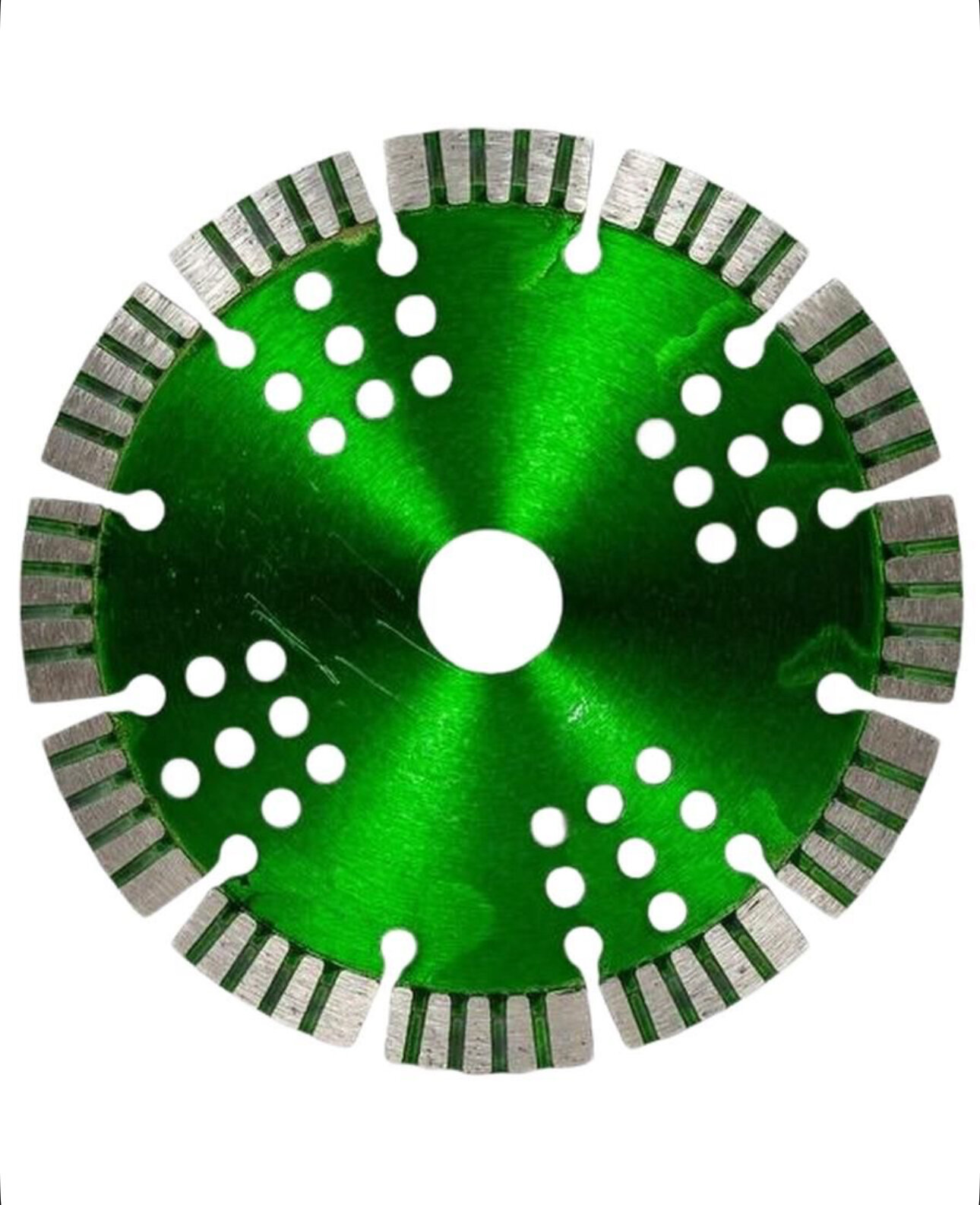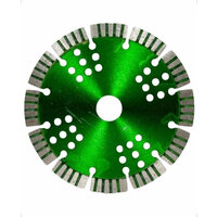 Алмазный диск Trio Diamond Grand Ultra Turbo-Segment Ø150 мм используется резки армированного бетона, кирпича, тротуарной плитки, бордюрного камня, огнеупоров, гранита и мрамора. Диск изготавливается методом горячего прессования. Высота алмазного слоя 12 мм. Посадочное отверстие - 22,23 мм. Рифленые сегменты режущей кромки обеспечивают высокую скорость реза, а перфорация корпуса способствует дополнительному охлаждению диска. Диск подходит для работы на УШМ.