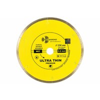 Технические характеристики сплошного ультратонкого отрезного алмазного диска TRIO-DIAMOND UTW507 Диаметр, мм 250 Тип диска алмазный Посадочный диаметр, мм 25.4 Толщина, мм 2 Тип по керамике и мрамору Тип реза сухой Высота алмазного слоя, мм 8