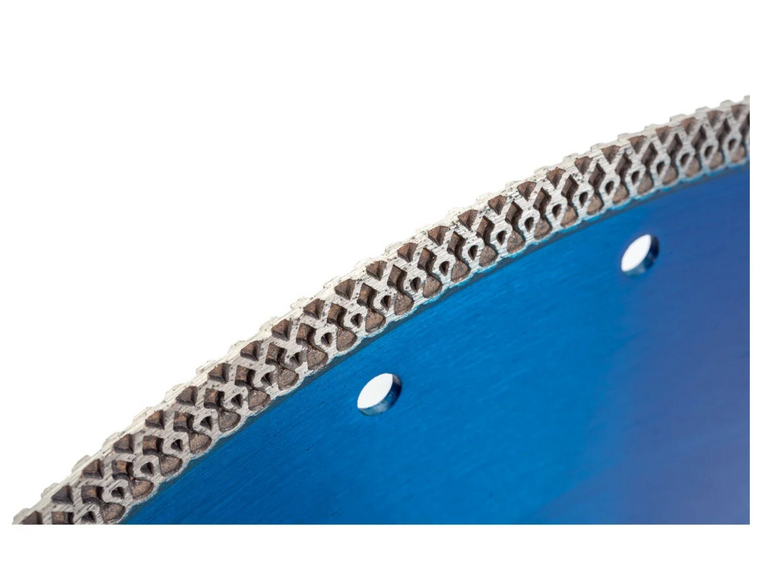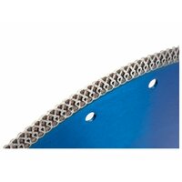 Назначение: керамогранит, керамика. Особенности: Х образная режущая кромка позволяет резать без применения воды. Фланец на корпусе диска, для дополнительной жесткости корпуса, и ультратонкая режущая кромка обеспечивают чистый рез без сколов. Применяется с камнерезным станком. Технология производства: Горячее прессование.
