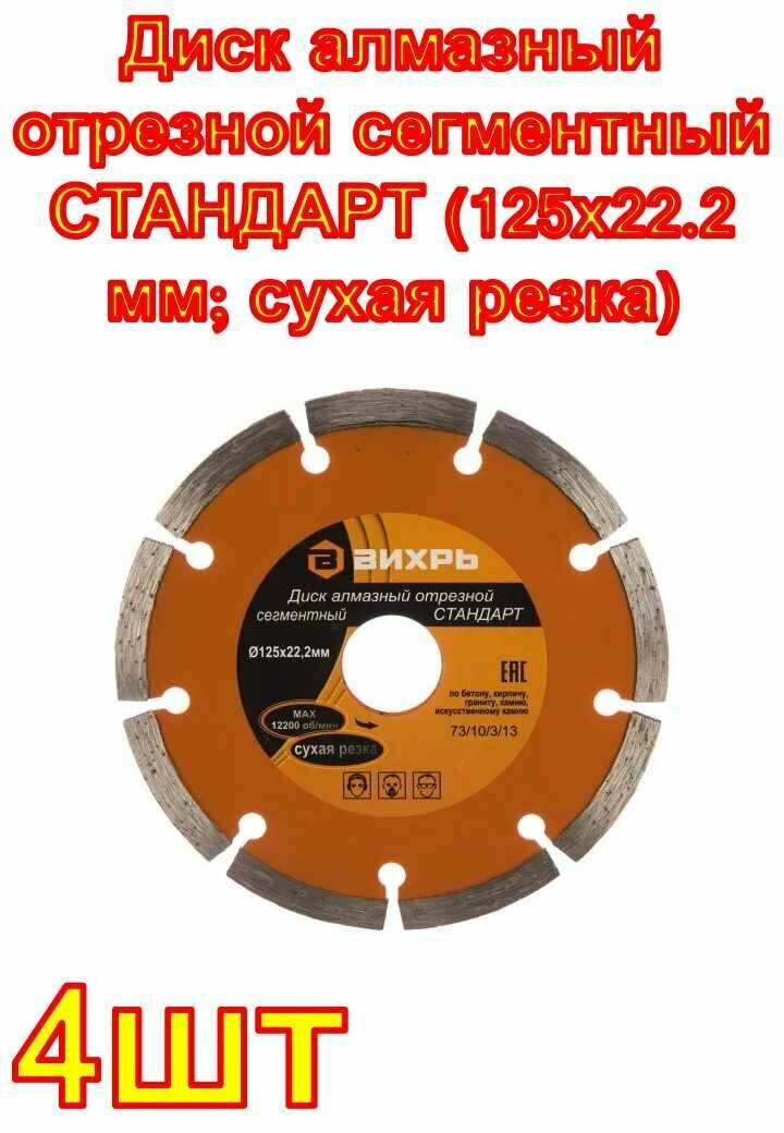 Диск алмазный отрезной сегментный стандарт (125х22.2 мм; сухая резка) Вихрь 4 шт.: сравнение цен, характеристики, фото, актуальное наличие и цены.