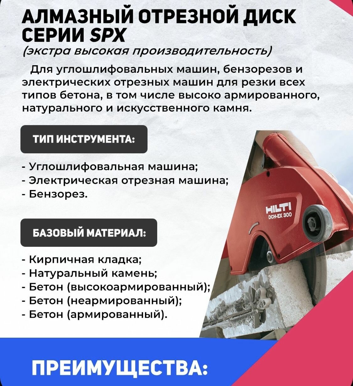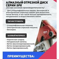 Алмазный отрезной диск серии SPX (экстра высокая производительность) для углошлифовальных машин, бензорезов и электрических отрезных машин для резки всех типов бетона, в том числе высоко армированного, натурального и искусственного камня