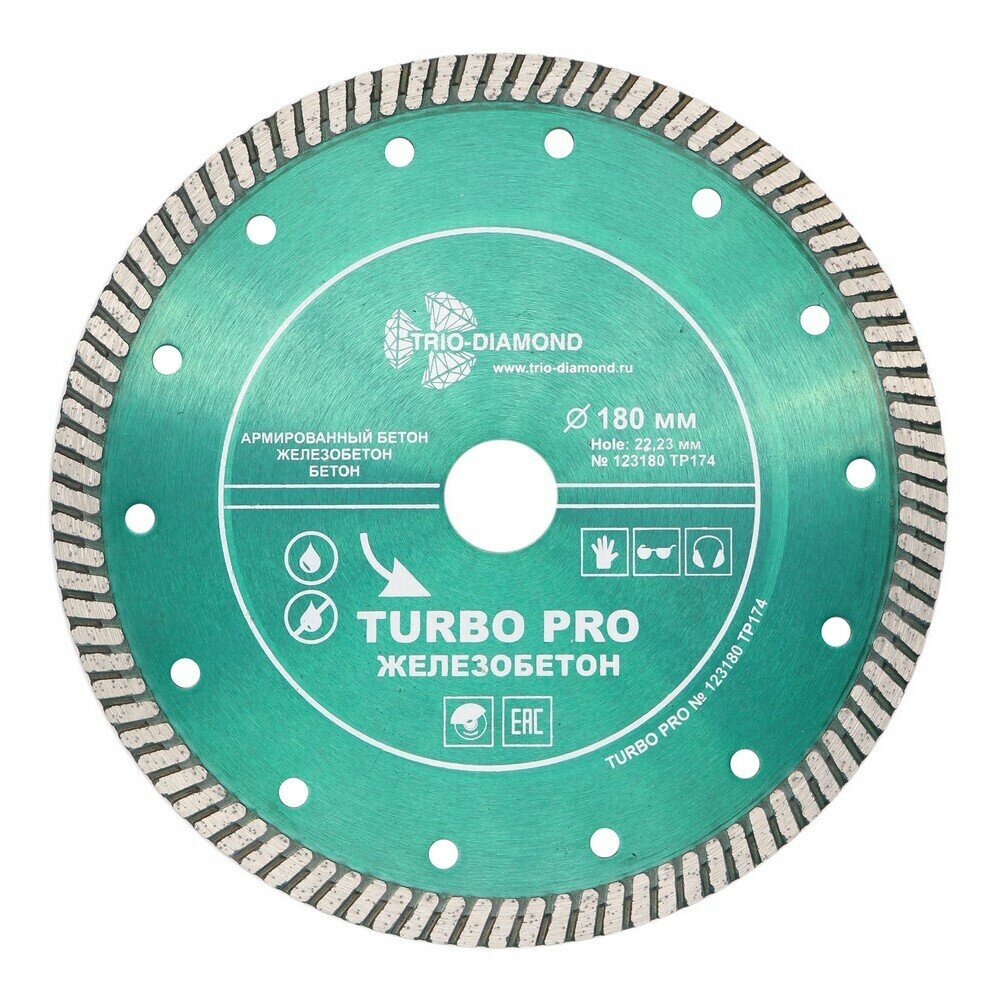Купить Диск алмазный по армированному бетону Trio-Diamond Turbo Pro Железобетон 180х22,23х2,65 мм турбо для штробления сухой рез (TP174) с доставкой по всей России. Диск алмазный по армированному бетону Trio-Diamond Turbo Pro Железобетон 180х22,23х2,65 мм турбо для штробления сухой рез (TP174): сравнение цен, характеристики, фото, актуальное наличие и цены.