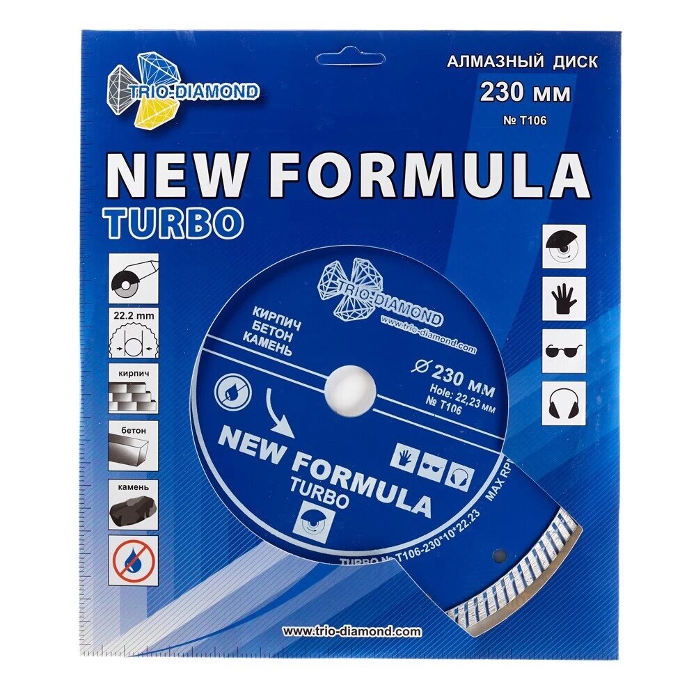 Купить Диск алмазный по бетону Trio-Diamond New Formula Turbo 230×22,2×2,8 мм турбо сухой рез (T106) с доставкой по всей России. Диск алмазный по бетону Trio-Diamond New Formula Turbo 230×22,2×2,8 мм турбо сухой рез (T106): сравнение цен, характеристики, фото, актуальное наличие и цены.