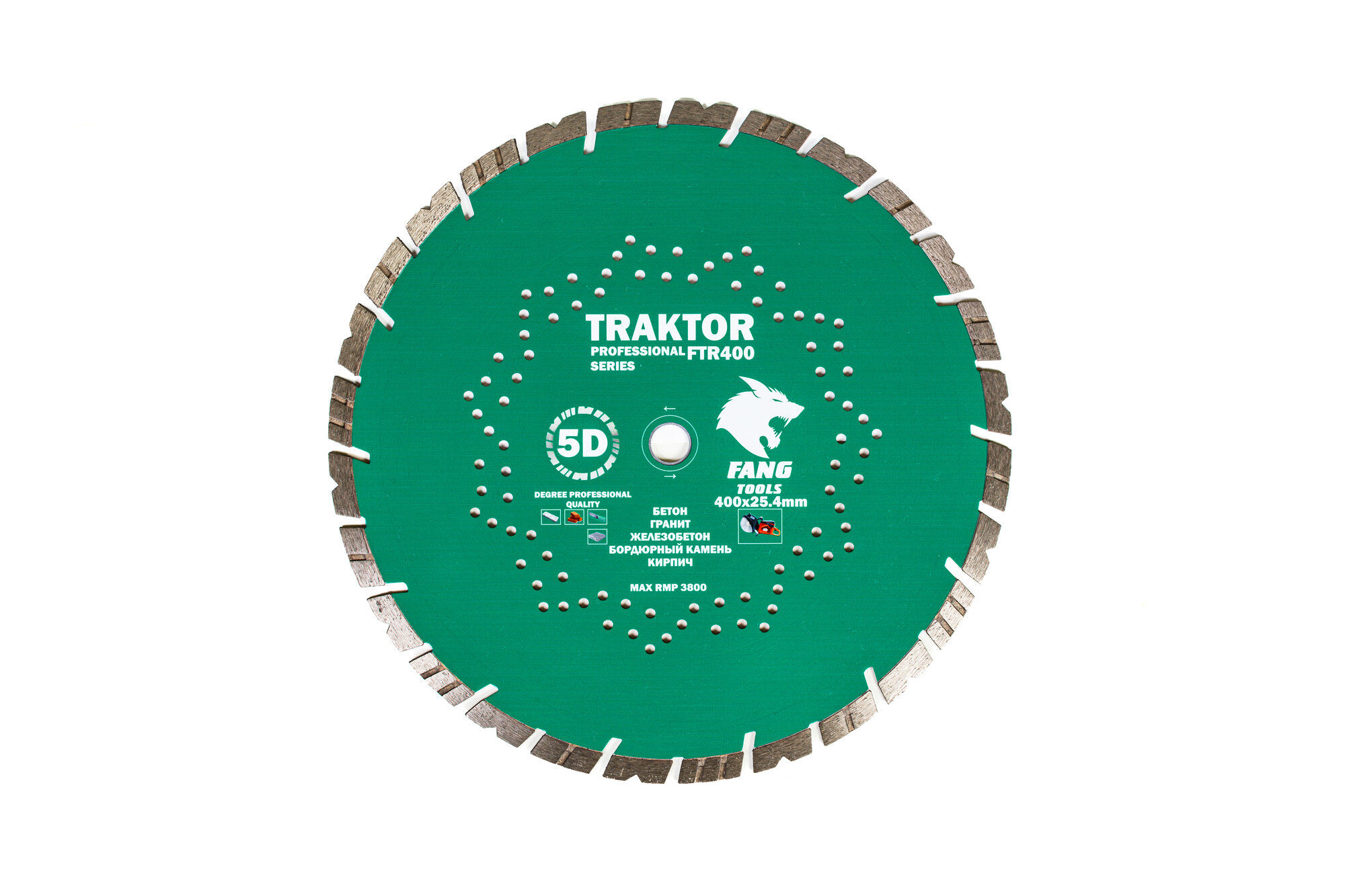 Диск алмазный Tractor предназначен для работы с различными материалами, включая железобетон, бетон, бордюрные камни, натуральный камень, тротуарную плитку и кирпич.