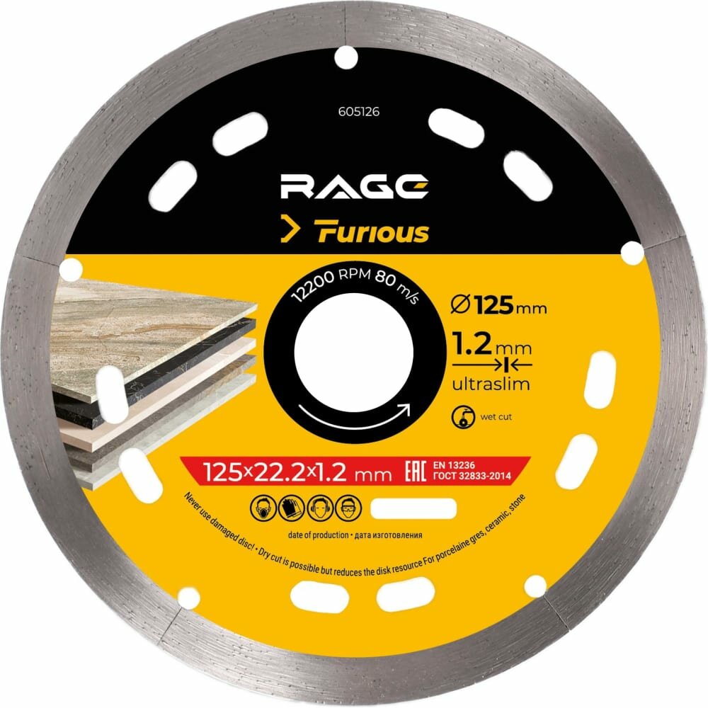 Купить Диск алмазный по керамограниту сплошной ультратонкий 125х1.2х22.2 мм RAGE Furious 605126 с доставкой по всей России. Диск алмазный по керамограниту сплошной ультратонкий 125х1.2х22.2 мм RAGE Furious 605126: сравнение цен, характеристики, фото, актуальное наличие и цены.