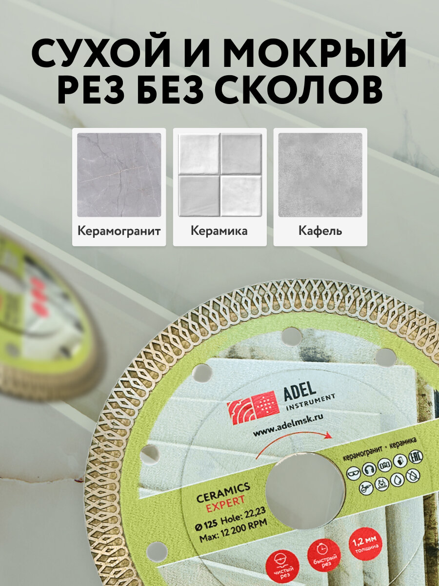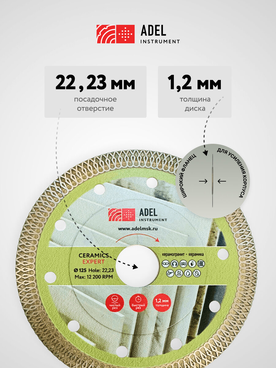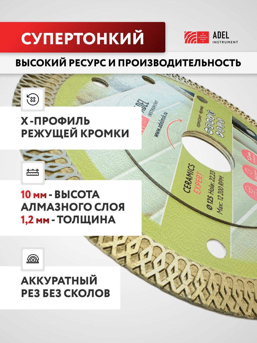 Купить Диск алмазный по керамограниту супертонкий 125х1,2х22,23 Ceramics Expert Adel Instrument с доставкой по всей России.
