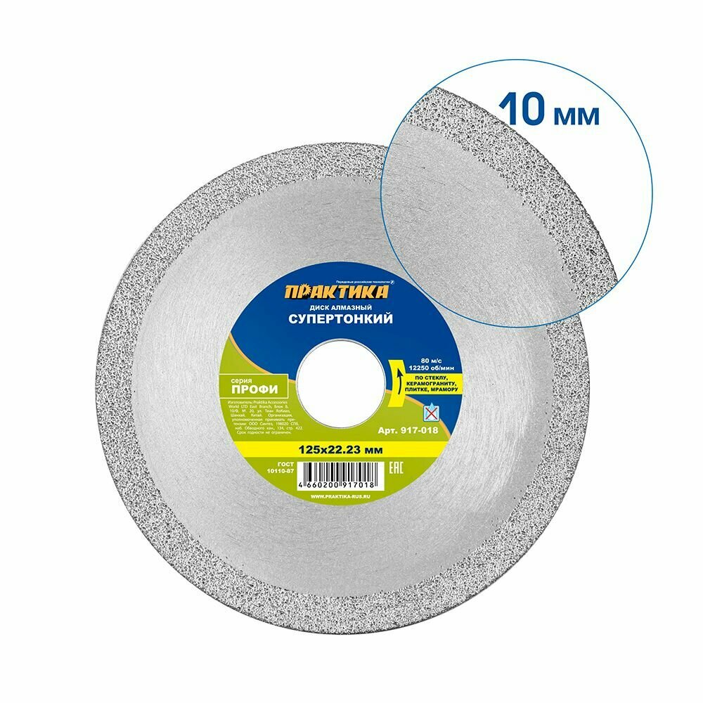 Диск алмазный по керамограниту супертонкий ПРАКТИКА Профи 125 х 22 х 1.7 мм, ширина 10 мм: сравнение цен, характеристики, фото, актуальное наличие и цены.