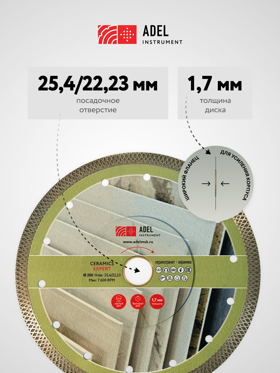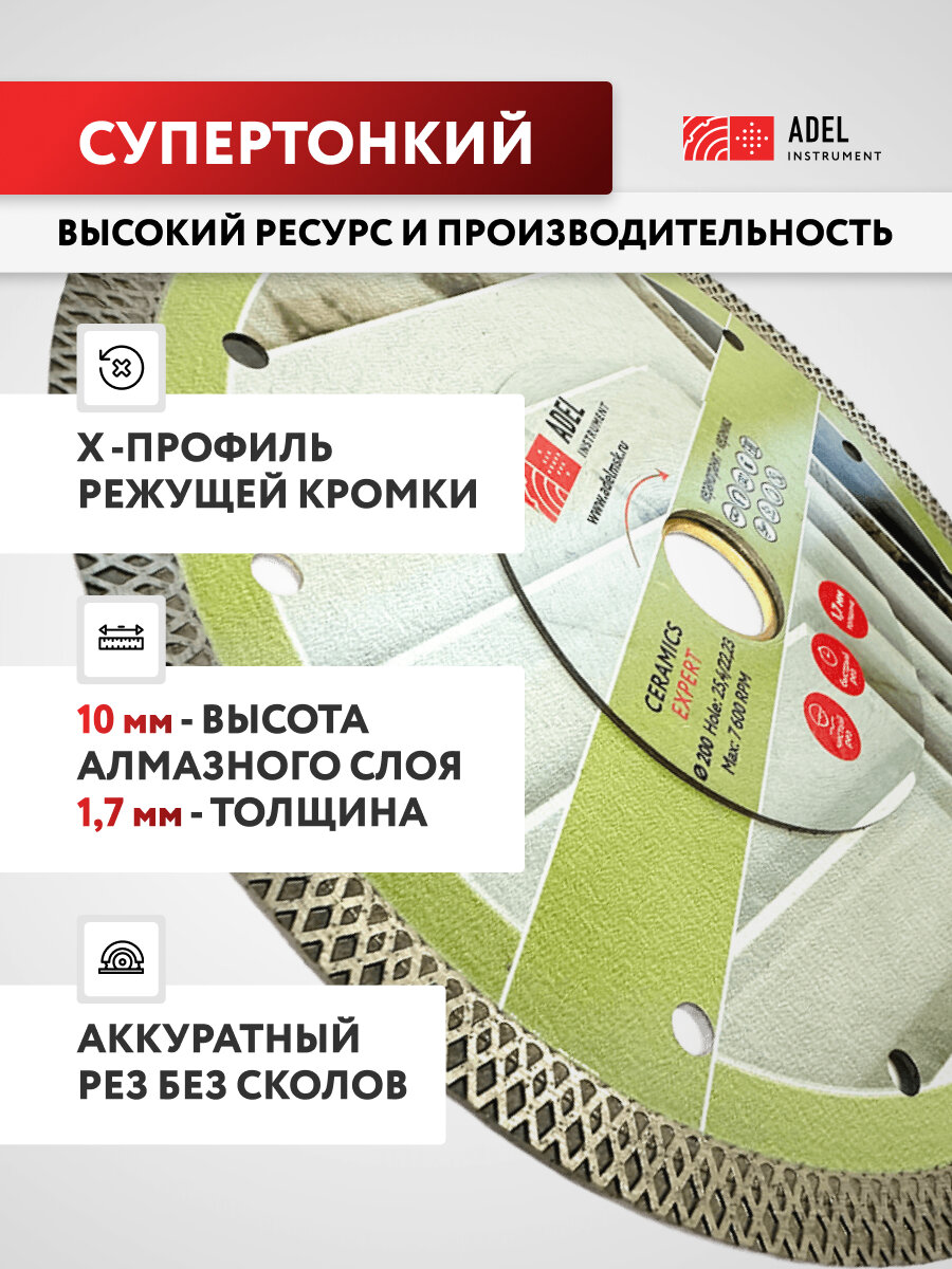 Диск алмазный по керамограниту X-тип 200х1,7х25,4/22,23 Ceramics Expert Adel Instrument: сравнение цен, характеристики, фото, актуальное наличие и цены.