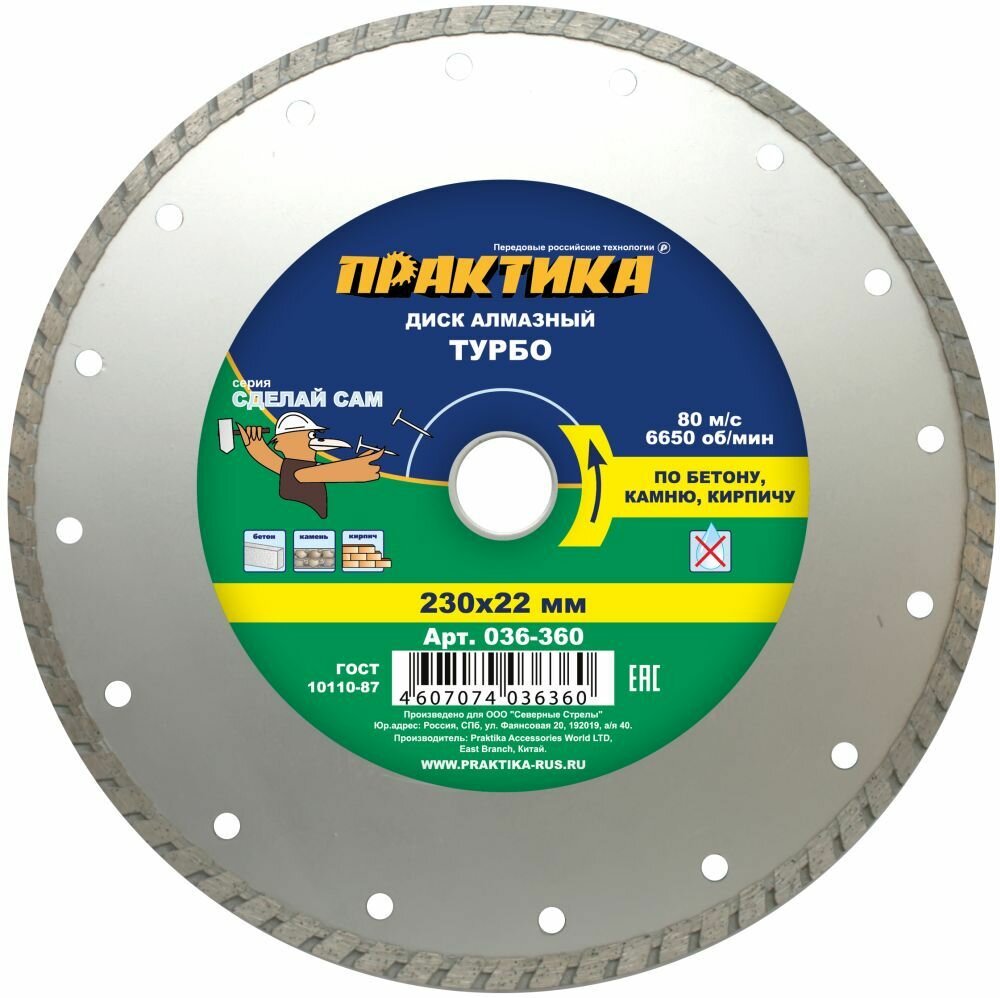Купить Диск алмазный ПРАКТИКА «Турбо», для сухой/влажной резки, 230мм, 3,1мм с доставкой по всей России. Диск алмазный ПРАКТИКА «Турбо», для сухой/влажной резки, 230мм, 3,1мм: сравнение цен, характеристики, фото, актуальное наличие и цены.