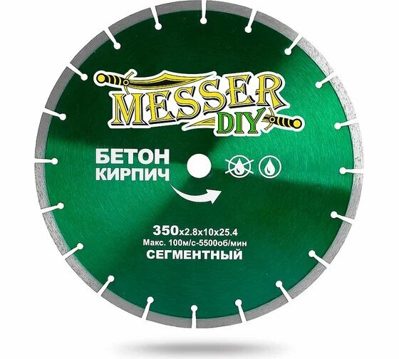 Диск алмазный сегментный по бетону, кирпичу (350х25.4 мм) MESSER DIY 01.350.024: сравнение цен, характеристики, фото, актуальное наличие и цены.