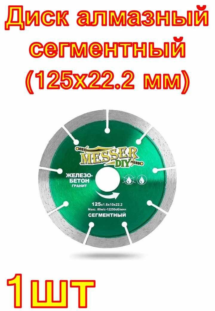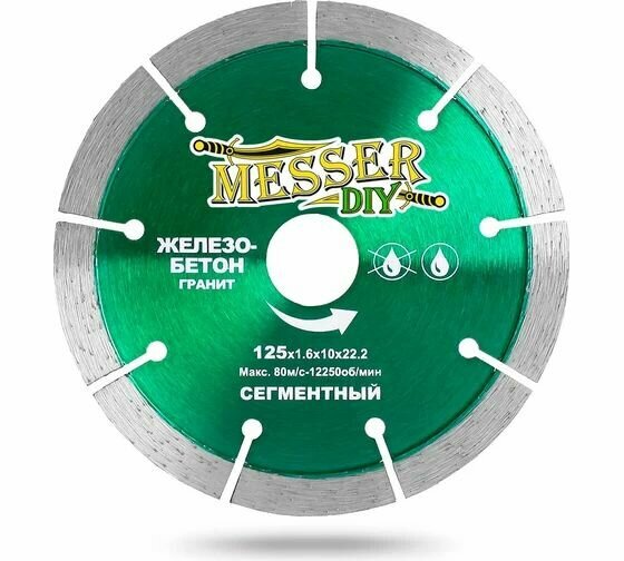 Диск алмазный сегментный по железобетону, граниту (125х22.2 мм) MESSER DIY: сравнение цен, характеристики, фото, актуальное наличие и цены.