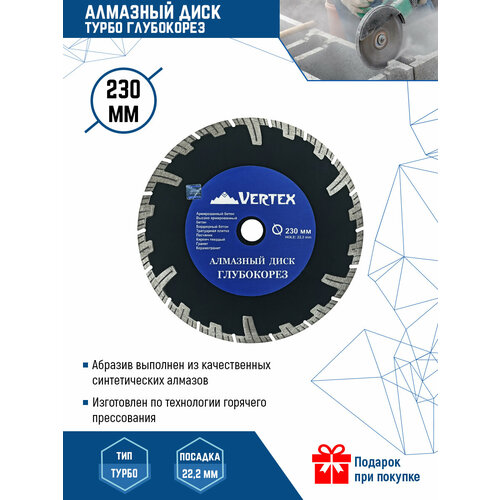 Алмазный диск турбо глубокорез 230 мм VertexTools