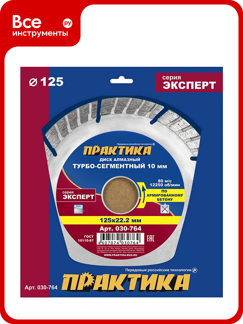 Диск алмазный Эксперт по армированному бетону (125х22.2 мм) ПРАКТИКА 030-764: сравнение цен, характеристики, фото, актуальное наличие и цены.