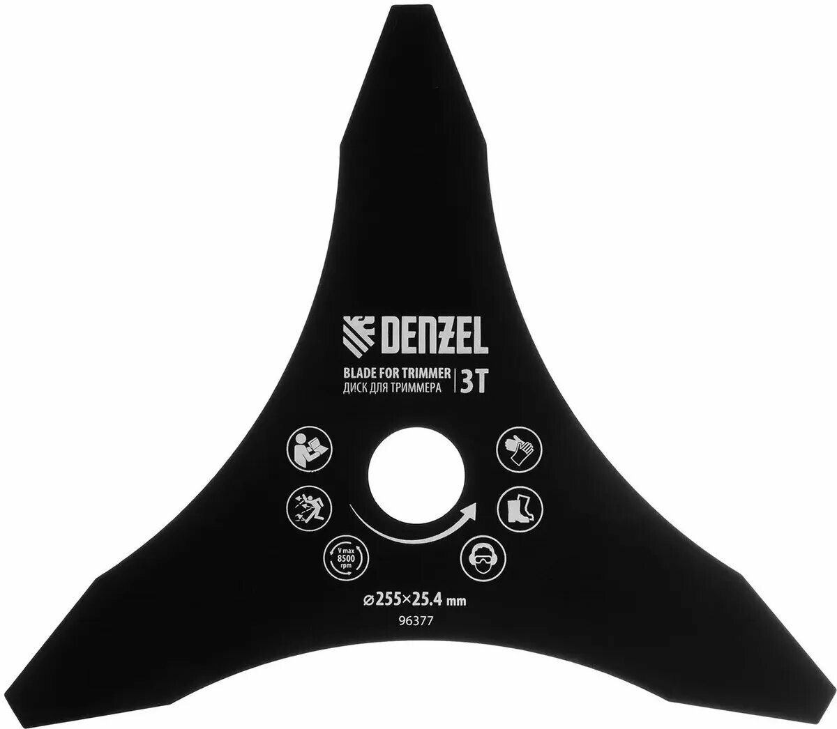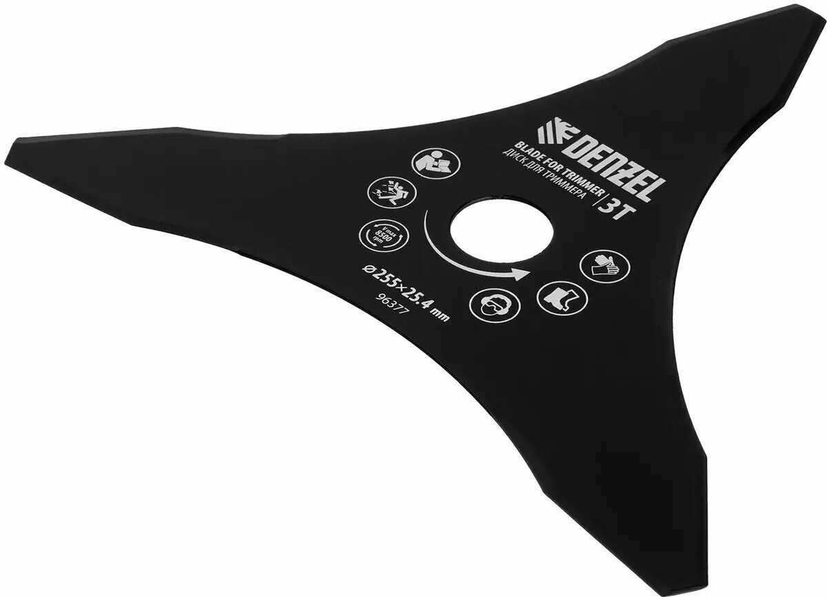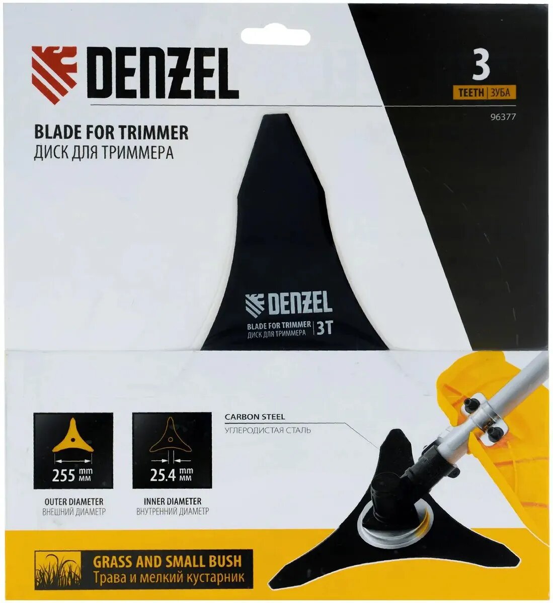Диск для триммера Denzel 96377 с 3 лезвиями, толщиной 1,6 мм, с внешним диаметром 250 мм и посадочным — 25,4 мм, используется для скашивания травы и мелкого кустарника. Устанавливается на бензокосу или электротриммер с верхним расположением двигателя и прямой штангой. Позволяет быстро очистить от сорняков и крупностеблевой растительности территорию большой площади. Диск пригодится владельцам загородных участков.
