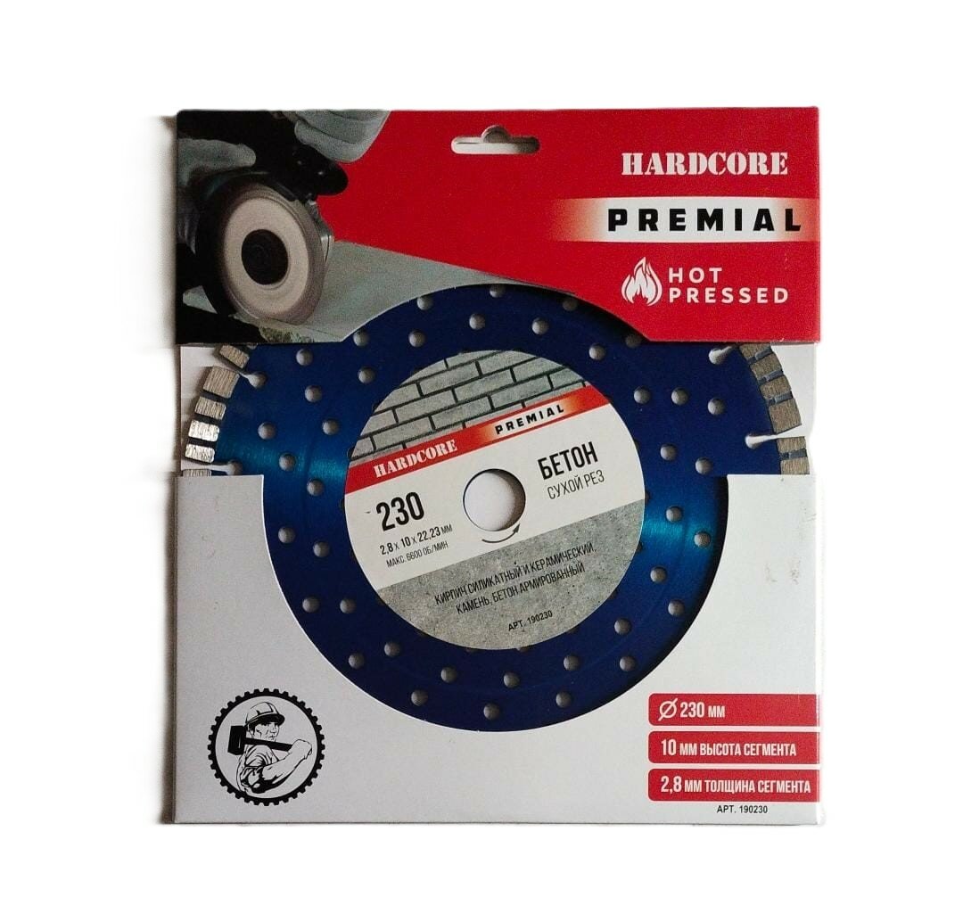 Купить Диск отр. алмазный турбо-сегментный 230х2,8х10х22,23 Hardcore Premial Бетон 190230 с доставкой по всей России. Диск отр. алмазный турбо-сегментный 230х2,8х10х22,23 Hardcore Premial Бетон 190230: сравнение цен, характеристики, фото, актуальное наличие и цены.