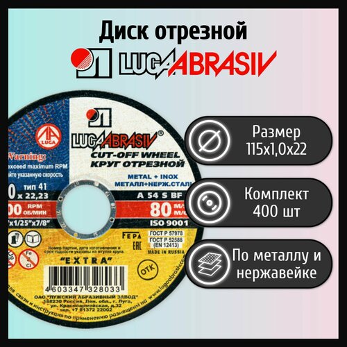 Купить Диск отрезной 115х1,0х22 LUGAABRASIV металл и нержавеющая сталь (400 шт) с доставкой по всей России. Диск отрезной 115х1,0х22 LUGAABRASIV металл и нержавеющая сталь (400 шт): сравнение цен, характеристики, фото, актуальное наличие и цены.