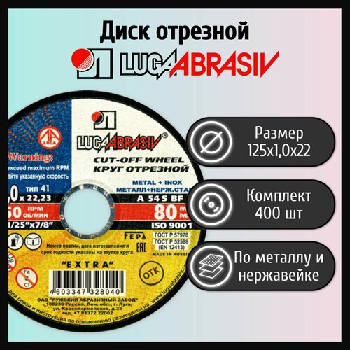 Купить Диск отрезной 125х1,0х22 LUGAABRASIV металл и нержавеющая сталь (400 шт) с доставкой по всей России. Диск отрезной 125х1,0х22 LUGAABRASIV металл и нержавеющая сталь (400 шт): сравнение цен, характеристики, фото, актуальное наличие и цены.