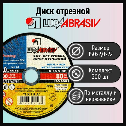 Купить Диск отрезной 150х2,0х22 LUGAABRASIV металл и нержавеющая сталь (200 шт) с доставкой по всей России. Диск отрезной 150х2,0х22 LUGAABRASIV металл и нержавеющая сталь (200 шт): сравнение цен, характеристики, фото, актуальное наличие и цены.