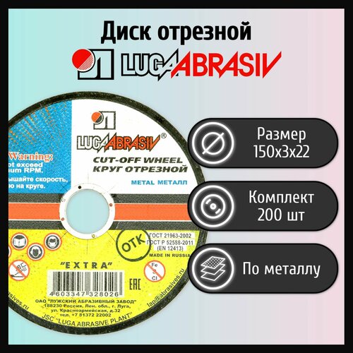 Купить Диск отрезной 150х3х22 LUGAABRASIV металл (100 шт) на болгарку с доставкой по всей России. Диск отрезной 150х3х22 LUGAABRASIV металл (100 шт) на болгарку: сравнение цен, характеристики, фото, актуальное наличие и цены.