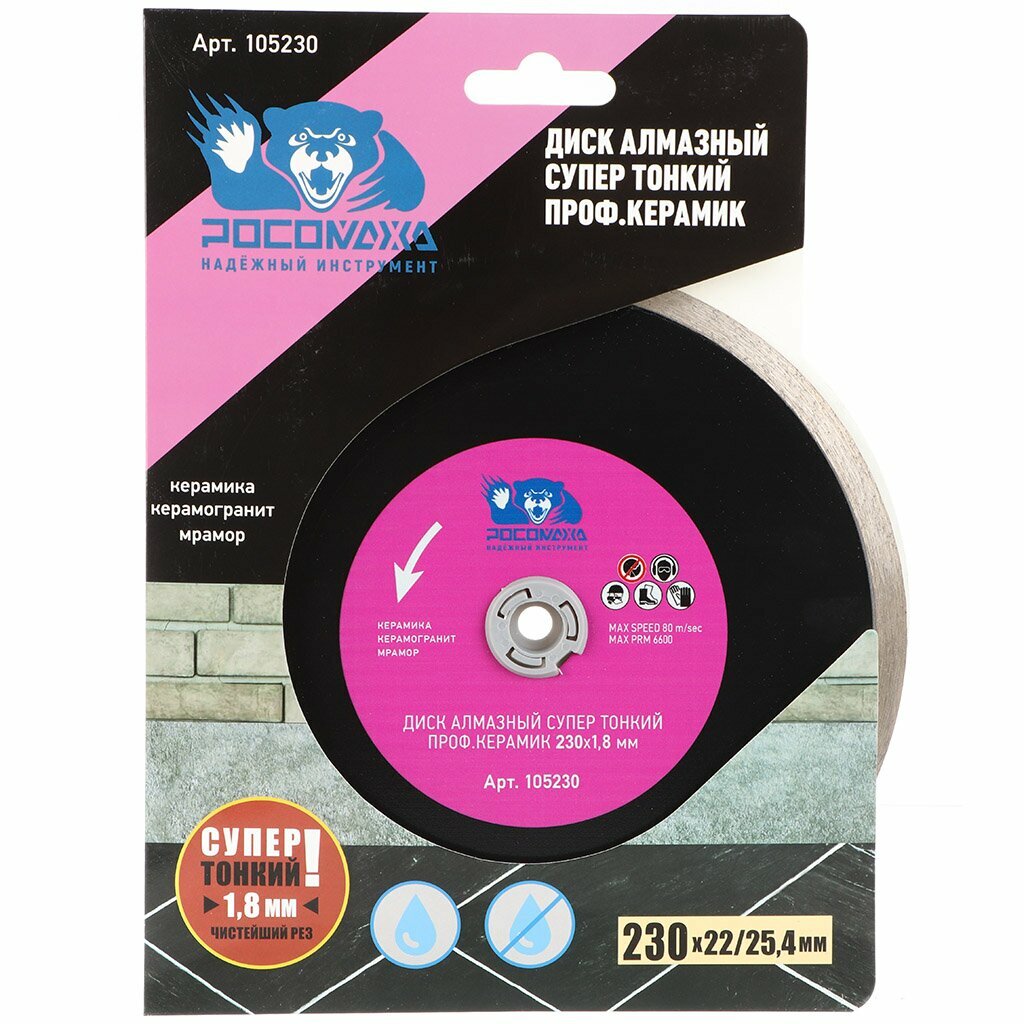 Диск отрезной алмазный по керамограниту, Росомаха, 230х1.8 мм, сухой рез, проф. керамик, 105230: сравнение цен, характеристики, фото, актуальное наличие и цены.