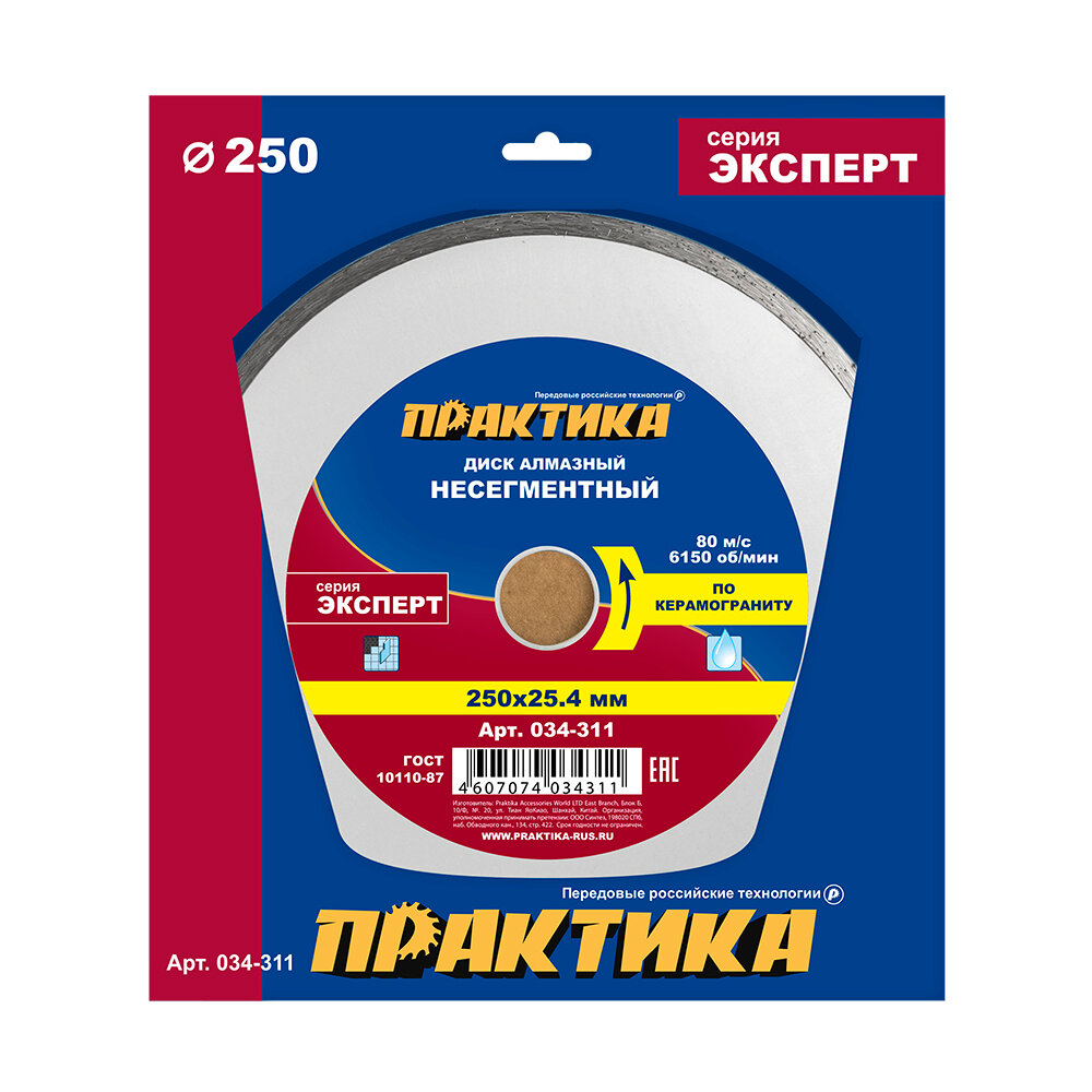 Диск отрезной по камню Практика 034-311 алмазный несегментный Эксперт-керамогранит 250 х 25.4мм, 1 шт. кор: сравнение цен, характеристики, фото, актуальное наличие и цены.