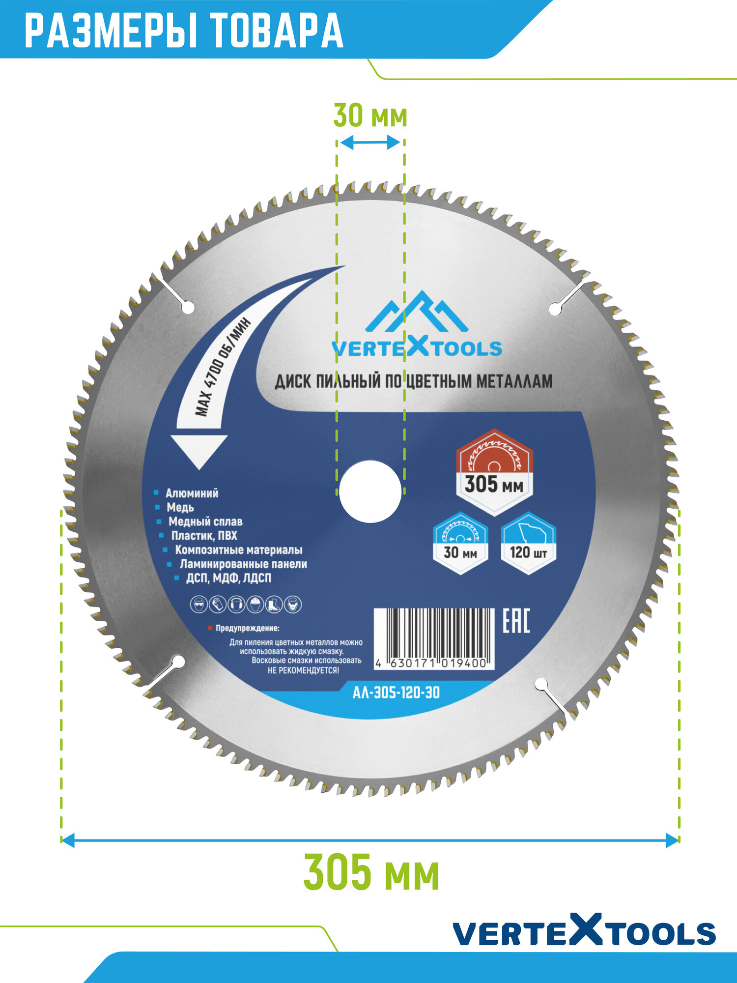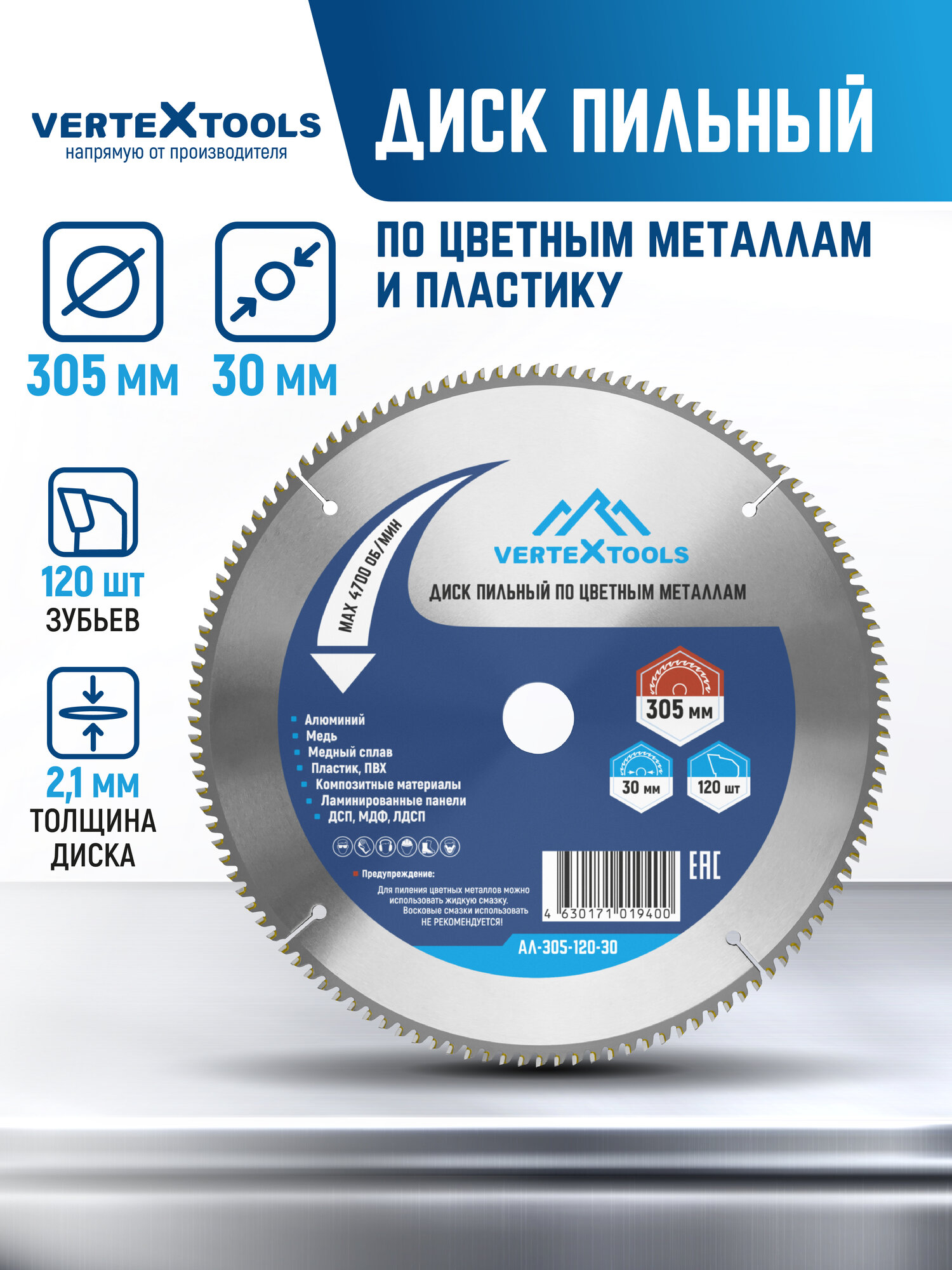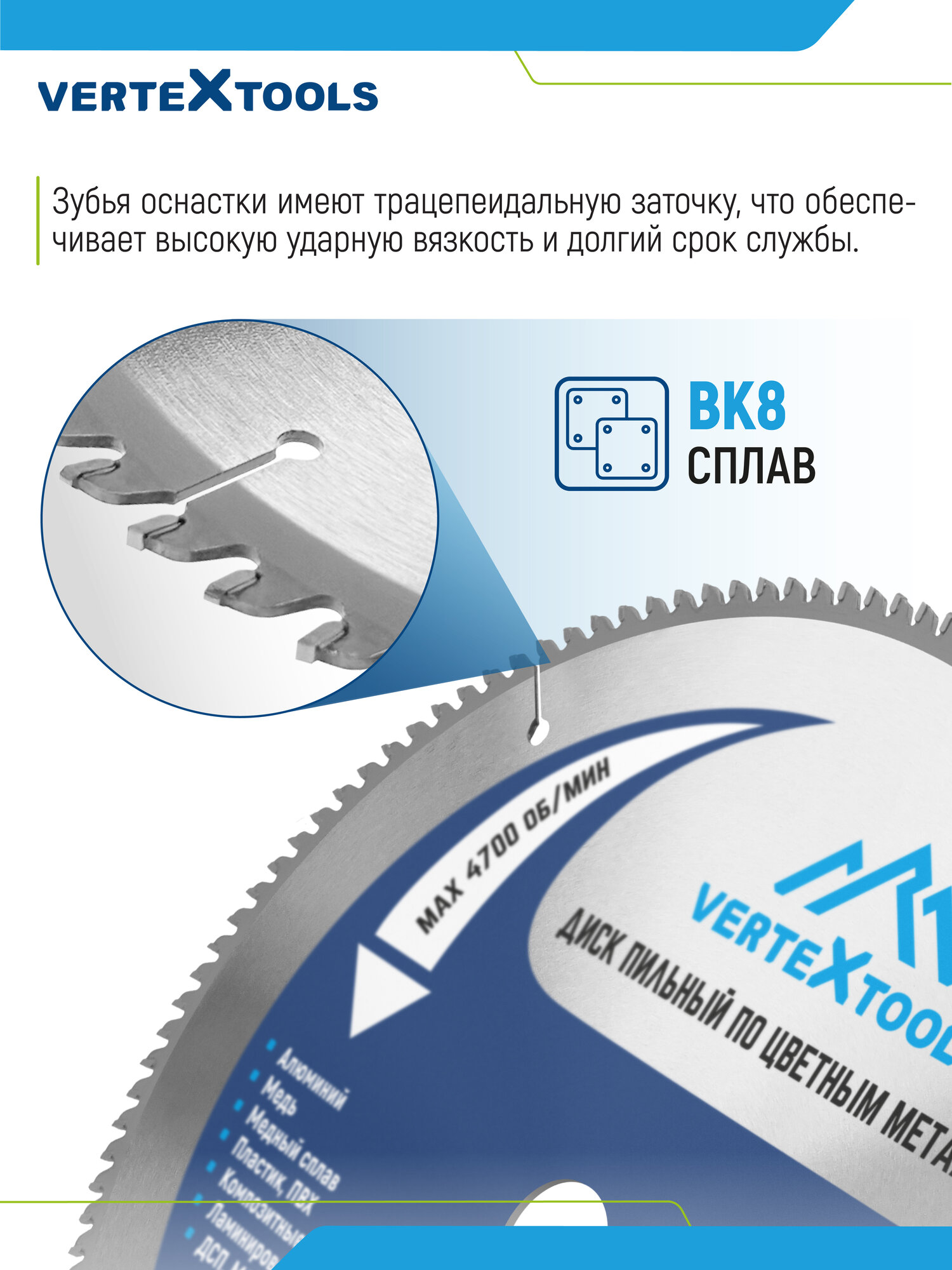 Предназначен для циркулярных и торцовочных пил. Используется для работ по алюминию, меди, пластику, композитным материалам и ламинированным панелям.