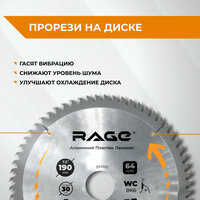 Диск пильный по алюминию 190 мм 64Z посадка 30 мм + кольцо 20 мм 16 мм RAGE by VIRA: сравнение цен, характеристики, фото, актуальное наличие и цены.