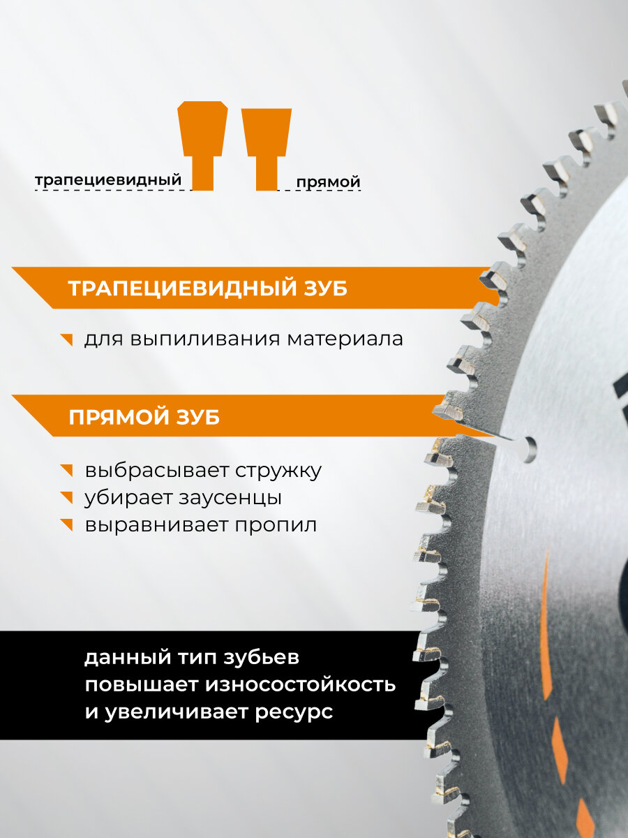 Диск пильный универсальный предназначен для продольного и поперечного распиливания мягких и твердых пород древесины, алюминия, пластика. Попеременно скошенные зубья и отрицательный угол атаки обеспечивают точный и чистый распил.