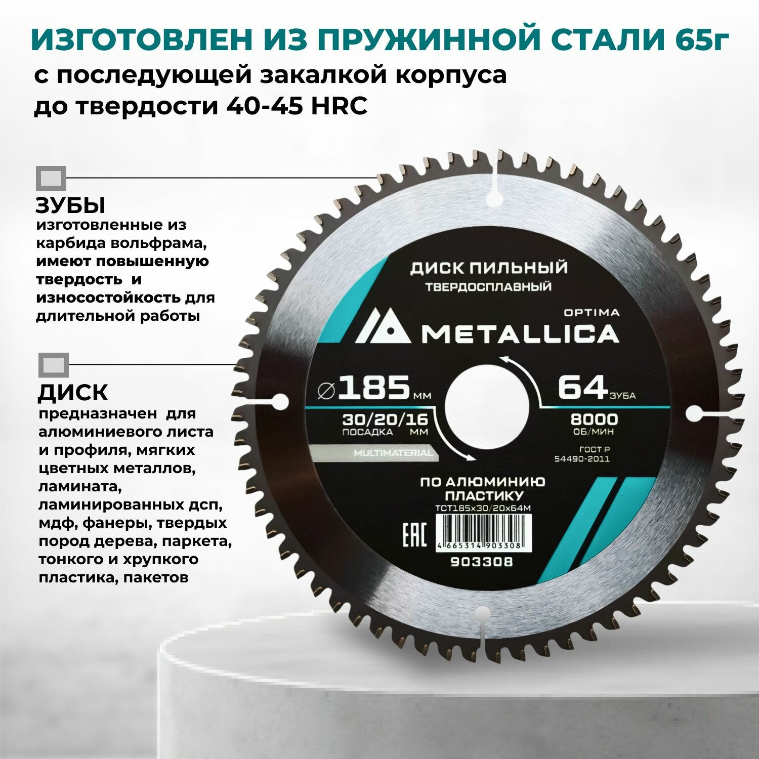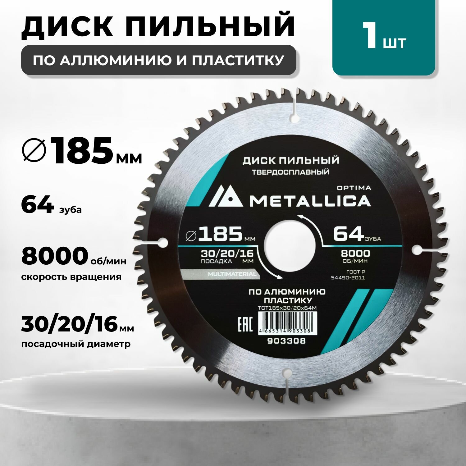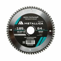 Диск пильный по алюминию и пластику 185×30/20/16 мм, 64 зуба твердосплавный METALLICA Optima Т2,4 мм: сравнение цен, характеристики, фото, актуальное наличие и цены.