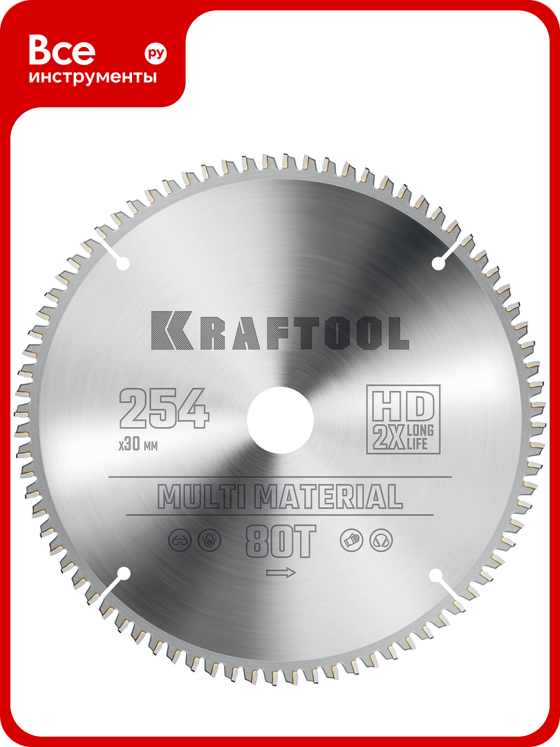 Диск пильный по алюминию Multi material 254×30 мм, 80Т KRAFTOOL 36953-254-30: сравнение цен, характеристики, фото, актуальное наличие и цены.