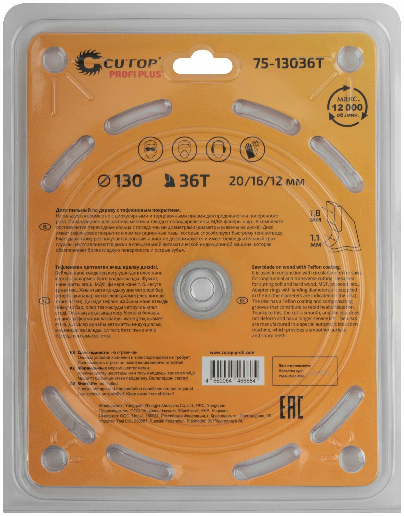 Диск пильный, Круг отрезной по дереву с тефлоновым покрытием для дисковых пил, циркулярных пил, торцовочных пил 36Т, CUTOP Profi plus, 130 х 1,1/1,8 посадочный диаметр 20/16/12 мм: сравнение цен, характеристики, фото, актуальное наличие и цены.