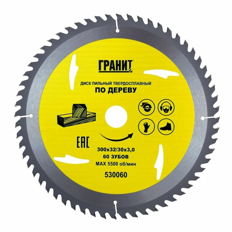 Купить Диск пильный по дереву гранит 300х32х3 мм 60 зубьев 530060 с доставкой по всей России. Диск пильный по дереву гранит 300х32х3 мм 60 зубьев 530060: сравнение цен, характеристики, фото, актуальное наличие и цены.
