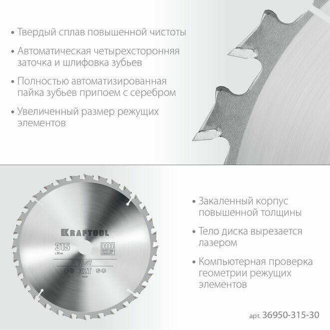 Диск пильный по дереву KRAFTOOL Fast 315х30мм 32Т,: сравнение цен, характеристики, фото, актуальное наличие и цены.