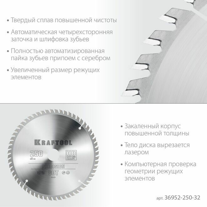 Диск пильный по дереву KRAFTOOL ″PRECISION″ 250х32мм 60Т, арт. 36952-250-32: сравнение цен, характеристики, фото, актуальное наличие и цены.
